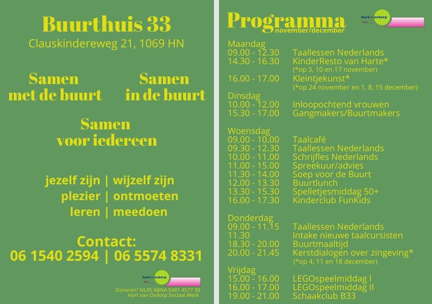 Sinds februari 2019 is Hart van Osdorp de drijvende kracht achter Buurthuis 33.