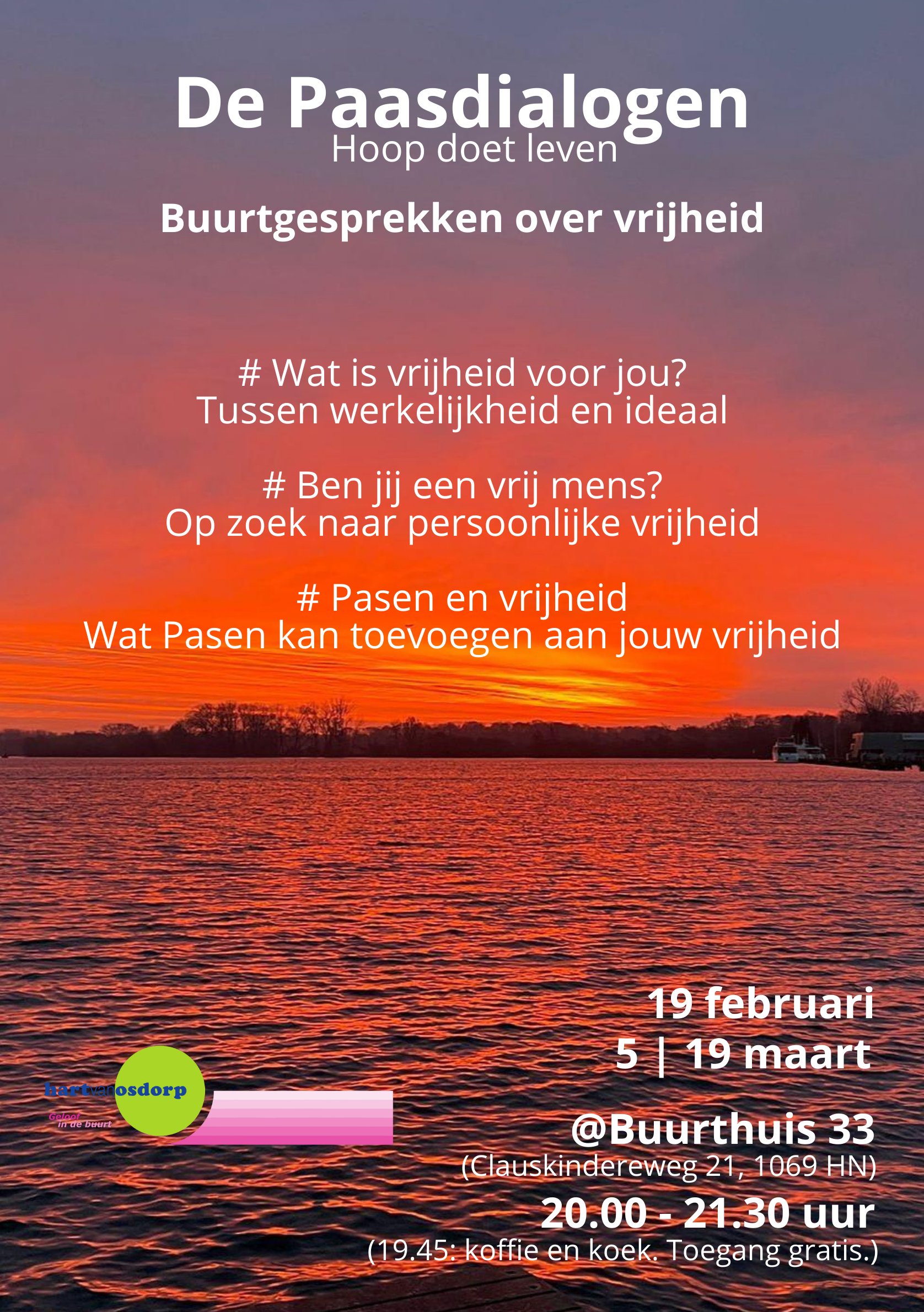 Wees dan welkom op 19 februari, 5 en 19 maart.